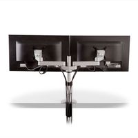 Easily mount two monitors side by side with the space-saving 9120 dual monitor mount. The articulating monitor arms allows users to position each monitor independently of the other, and quickly adjust, pivot, and place as needs change. The included 14? pole mount enables users to set the height at any desired position.Features: