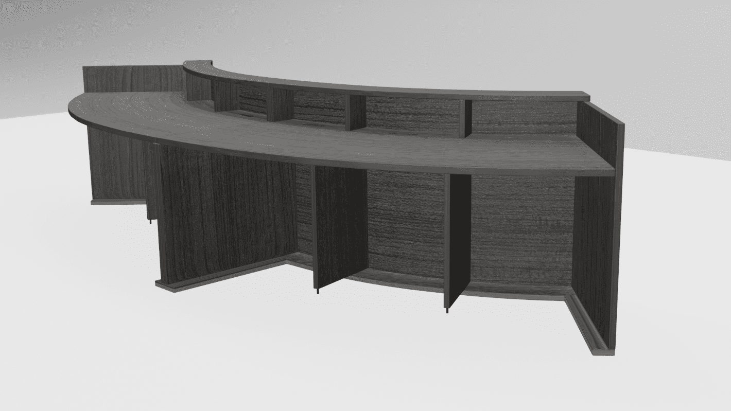 COUNCIL CHAMBERS DESK - CRESCENT SHAPED - SEATS 6.