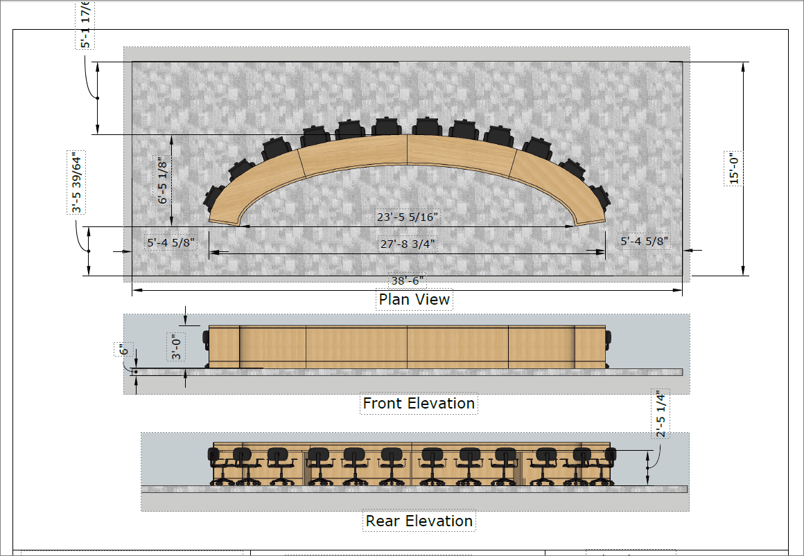 Elliptical crescent-shaped council chamber desk