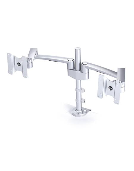 Allows two monitors can be positioned side-by-side or back-to-back, enabling greater productivity. Cable management keeps cords neat and organized, and the Dual-Monitor Arm is now available in Black, Silver, and White!Features: