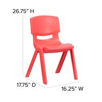 2 PACK RED PLASTIC STACKABLE SCHOOL CHAIR WITH 15.5" SEAT HEIGHT: FREE SHIPPING!
