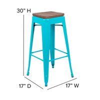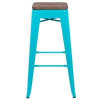 30" HIGH METAL INDOOR BAR STOOL WITH WOOD SEAT IN TEAL - STACKABLE SET OF 4