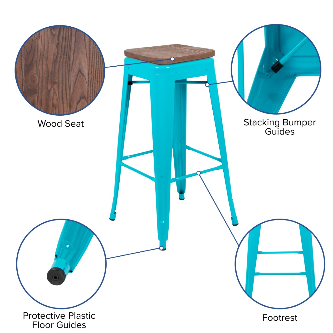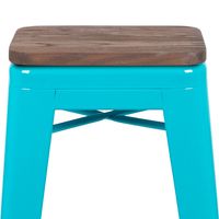 30" HIGH METAL INDOOR BAR STOOL WITH WOOD SEAT IN TEAL - STACKABLE SET OF 4 FREE SHIPPING!