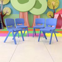 4 PACK BLUE PLASTIC STACKABLE SCHOOL CHAIR WITH 15.5'' SEAT HEIGHT