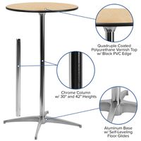 24'' ROUND WOOD COCKTAIL TABLE WITH 30'' AND 42'' COLUMNS: FREE SHIPPING!