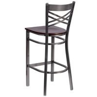 TOUGH ENOUGH SERIES CLEAR COATED ''X'' BACK METAL RESTAURANT BARSTOOL - WALNUT WOOD SEAT