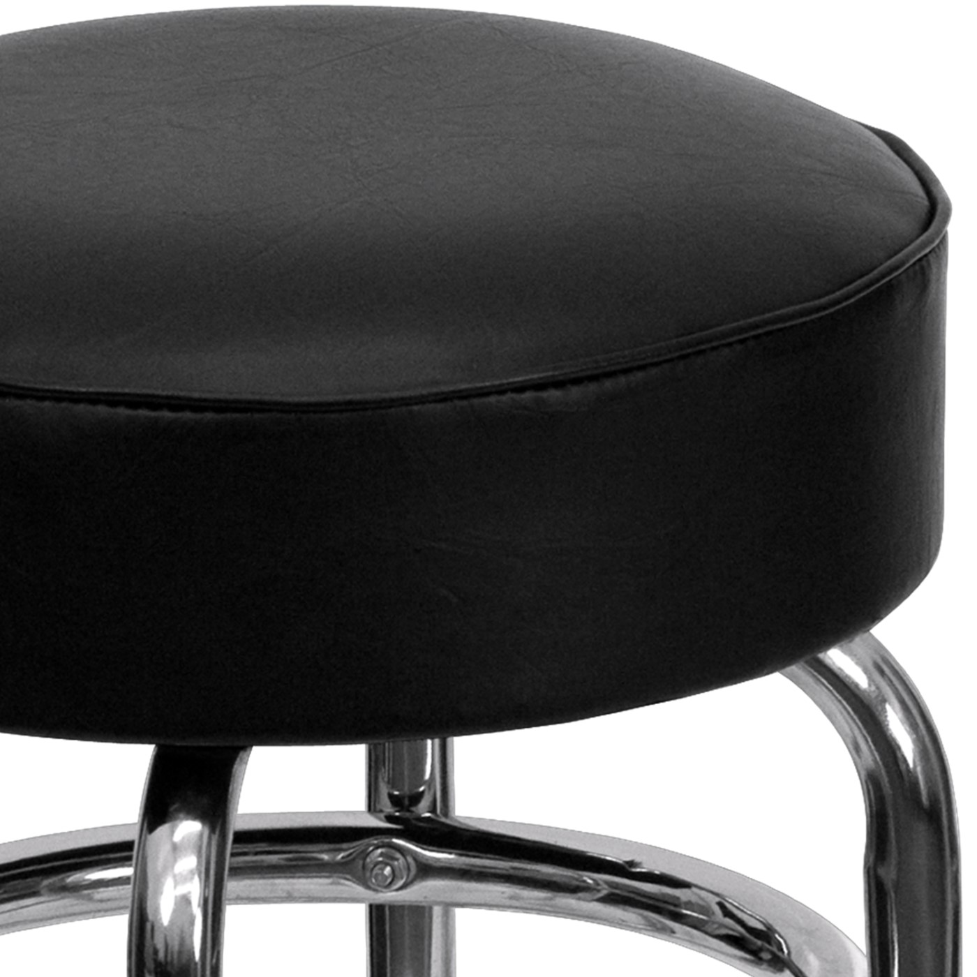 DOUBLE RING CHROME BARSTOOL WITH BLACK SEAT