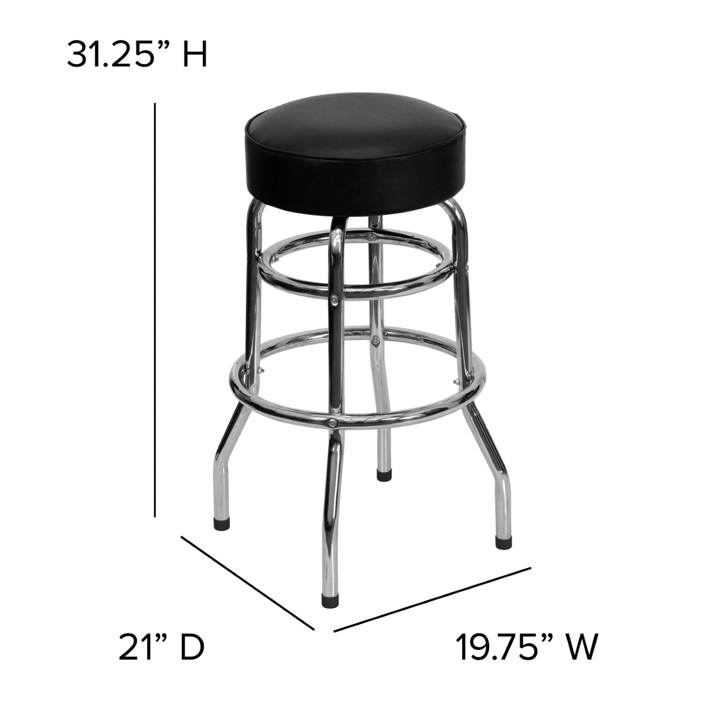 DOUBLE RING CHROME BARSTOOL WITH BLACK SEAT FREE SHIPPING!