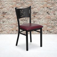 TOUGH ENOUGH SERIES BLACK COFFEE BACK METAL RESTAURANT CHAIR - BURGUNDY VINYL SEAT: FREE SHIPPING!