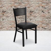 TOUGH ENOUGH SERIES BLACK GRID BACK METAL RESTAURANT CHAIR - BLACK VINYL SEAT