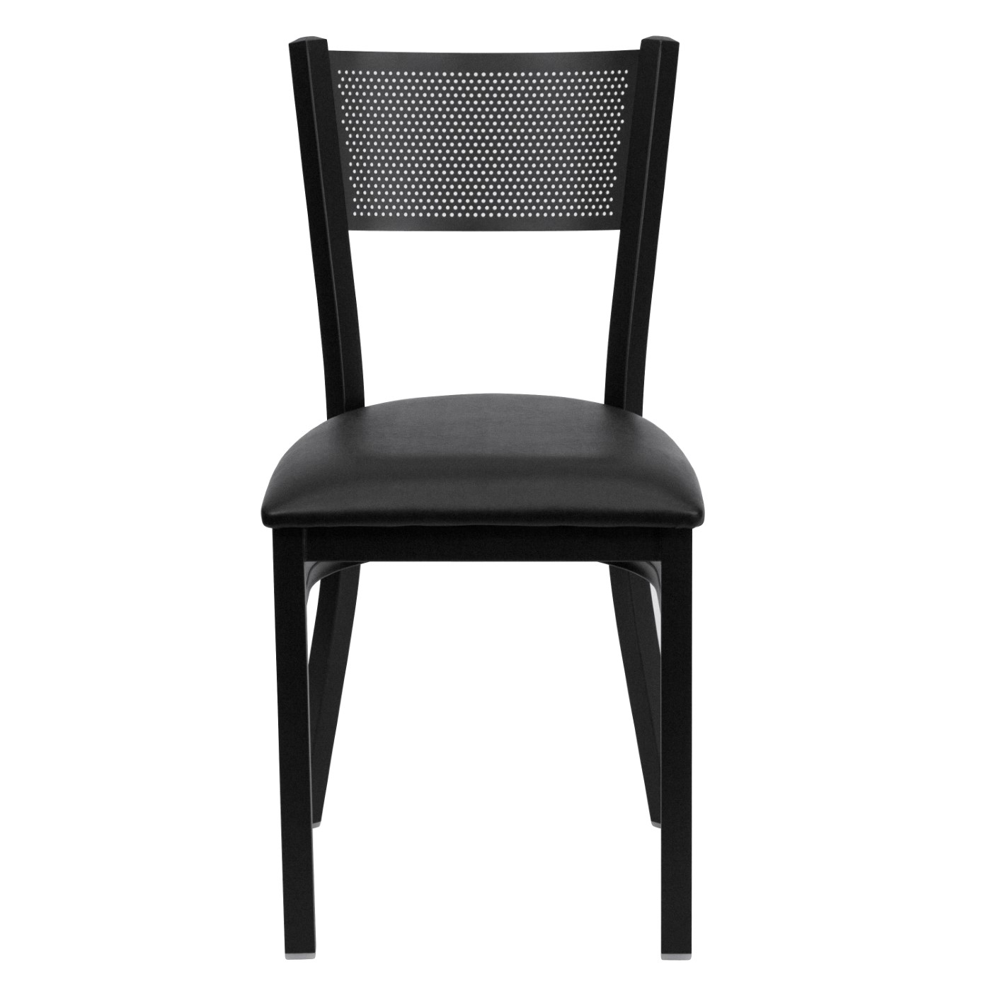 TOUGH ENOUGH SERIES BLACK GRID BACK METAL RESTAURANT CHAIR - BLACK VINYL SEAT FREE SHIPPING!