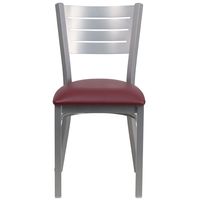 TOUGH ENOUGH SERIES SILVER SLAT BACK METAL RESTAURANT CHAIR - BURGUNDY VINYL SEAT: FREE SHIPPING!