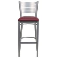 TOUGH ENOUGH SERIES SILVER SLAT BACK METAL RESTAURANT BARSTOOL - BURGUNDY VINYL SEAT