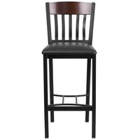 ECLIPSE SERIES VERTICAL BACK BLACK METAL AND WALNUT WOOD RESTAURANT BARSTOOL WITH BLACK VINYL SEAT: FREE SHIPPING!