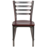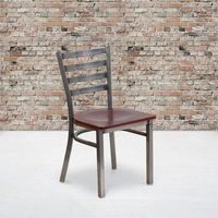 TOUGH ENOUGH SERIES CLEAR COATED LADDER BACK METAL RESTAURANT CHAIR - MAHOGANY WOOD SEAT: FREE SHIPPING!