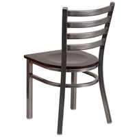 TOUGH ENOUGH SERIES CLEAR COATED LADDER BACK METAL RESTAURANT CHAIR - WALNUT WOOD SEAT