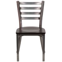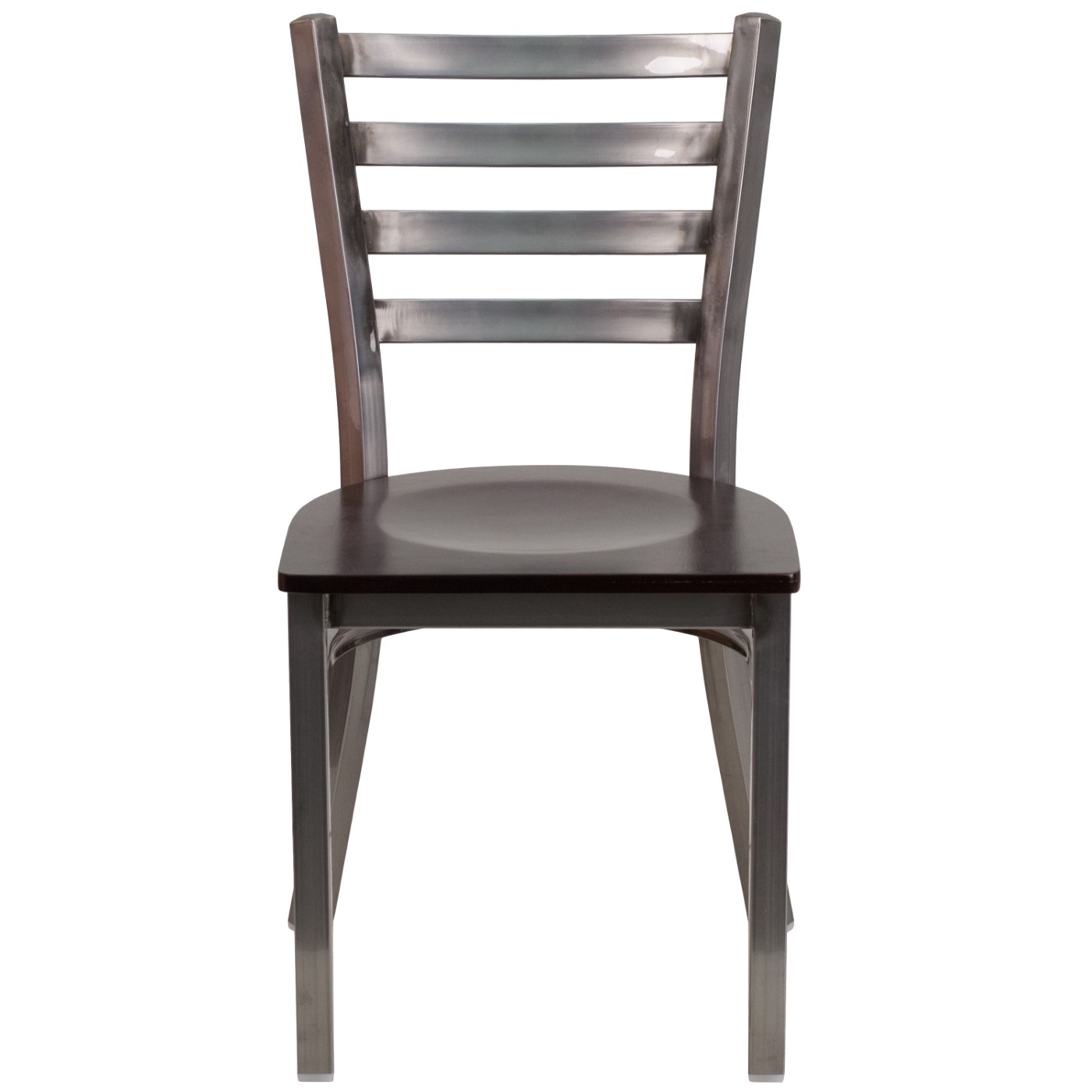 TOUGH ENOUGH SERIES CLEAR COATED LADDER BACK METAL RESTAURANT CHAIR - WALNUT WOOD SEAT: FREE SHIPPING!