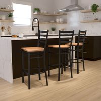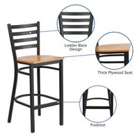 TOUGH ENOUGH SERIES BLACK LADDER BACK METAL RESTAURANT BARSTOOL - NATURAL WOOD SEAT: FREE SHIPPING!
