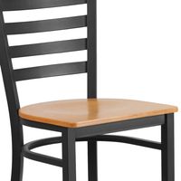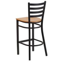 TOUGH ENOUGH SERIES BLACK LADDER BACK METAL RESTAURANT BARSTOOL - NATURAL WOOD SEAT