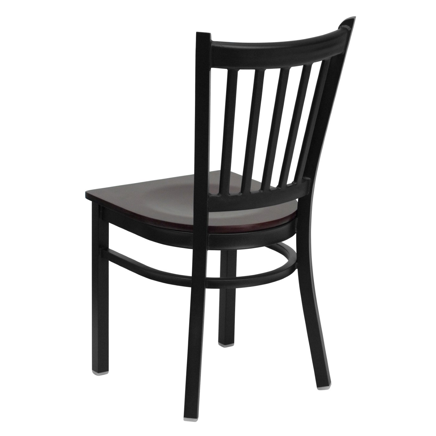 TOUGH ENOUGH SERIES BLACK VERTICAL BACK METAL RESTAURANT CHAIR - MAHOGANY WOOD SEAT: FREE SHIPPING!