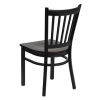 TOUGH ENOUGH SERIES BLACK VERTICAL BACK METAL RESTAURANT CHAIR - MAHOGANY WOOD SEAT