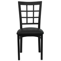 TOUGH ENOUGH SERIES BLACK WINDOW BACK METAL RESTAURANT CHAIR - BLACK VINYL SEAT