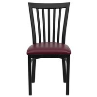 TOUGH ENOUGH SERIES BLACK SCHOOL HOUSE BACK METAL RESTAURANT CHAIR - BURGUNDY VINYL SEAT FREE SHIPPING!