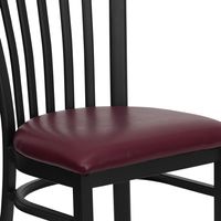 TOUGH ENOUGH SERIES BLACK SCHOOL HOUSE BACK METAL RESTAURANT CHAIR - BURGUNDY VINYL SEAT