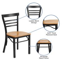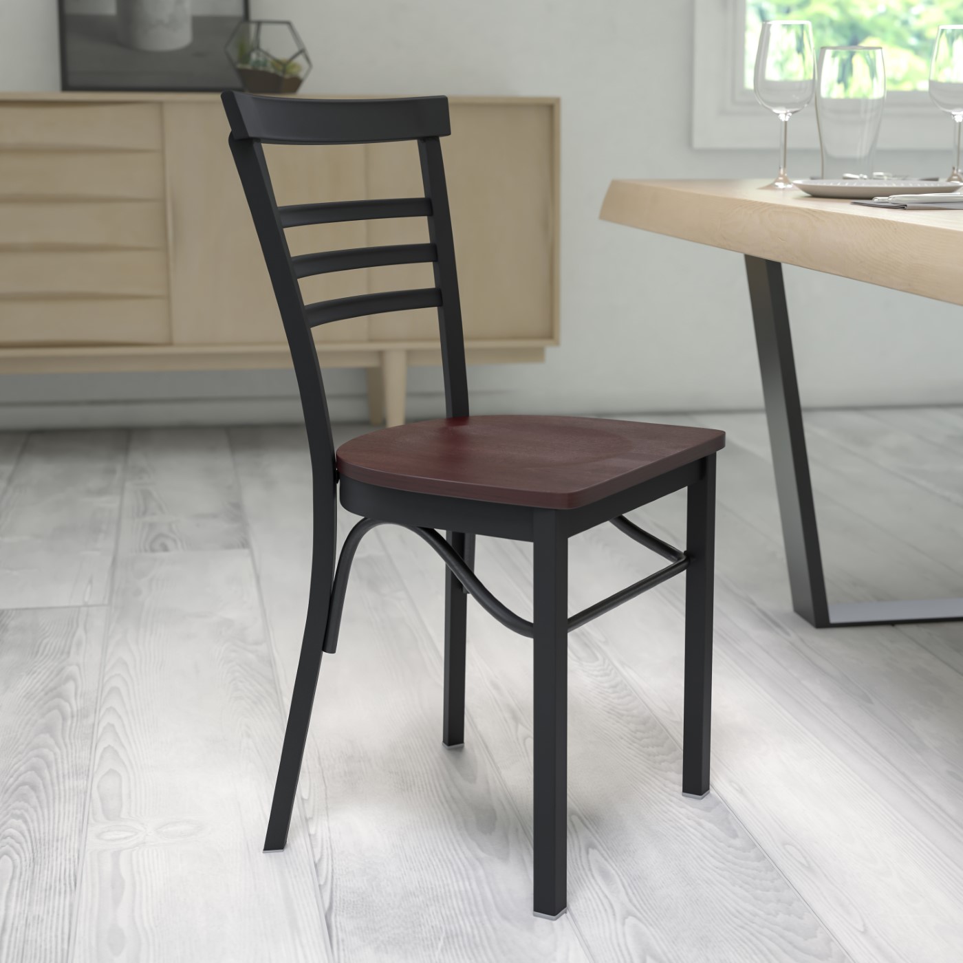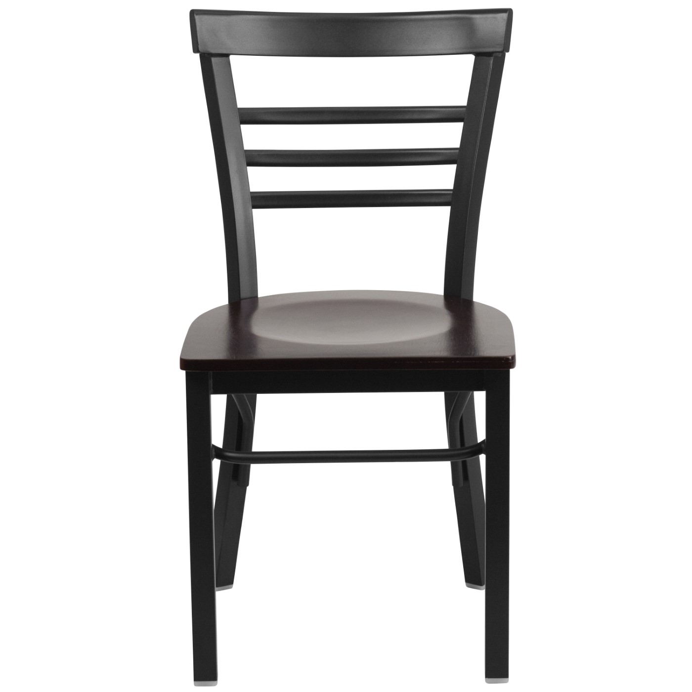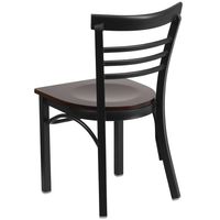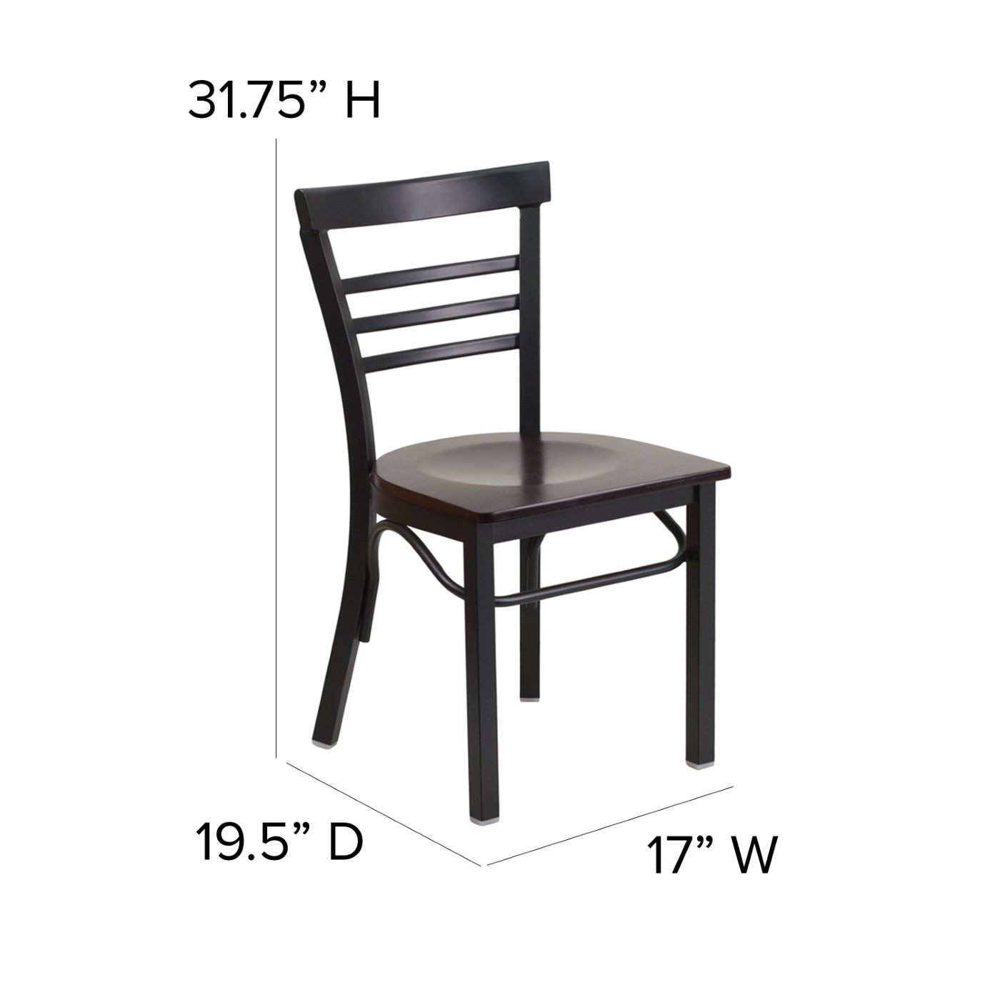 TOUGH ENOUGH SERIES BLACK THREE-SLAT LADDER BACK METAL RESTAURANT CHAIR - WALNUT WOOD SEAT: FREE SHIPPING!