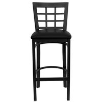 TOUGH ENOUGH SERIES BLACK WINDOW BACK METAL RESTAURANT BARSTOOL - BLACK VINYL SEAT: FREE SHIPPING!