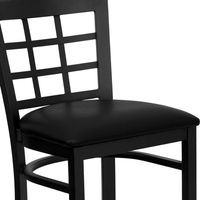 TOUGH ENOUGH SERIES BLACK WINDOW BACK METAL RESTAURANT BARSTOOL - BLACK VINYL SEAT