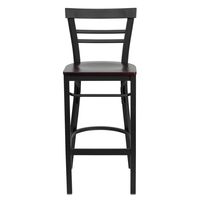 TOUGH ENOUGH SERIES BLACK TWO-SLAT LADDER BACK METAL RESTAURANT BARSTOOL - MAHOGANY WOOD SEAT