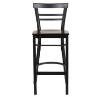 TOUGH ENOUGH SERIES BLACK TWO-SLAT LADDER BACK METAL RESTAURANT BARSTOOL - WALNUT WOOD SEAT: FREE SHIPPING!