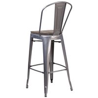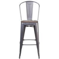 30" HIGH CLEAR COATED BARSTOOL WITH BACK AND WOOD SEAT