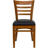 TOUGH ENOUGH SERIES LADDER BACK CHERRY WOOD RESTAURANT CHAIR - BLACK VINYL SEAT FREE SHIPPING!
