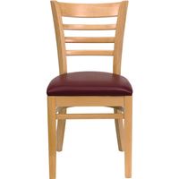 TOUGH ENOUGH SERIES LADDER BACK NATURAL WOOD RESTAURANT CHAIR - BURGUNDY VINYL SEAT: FREE SHIPPING!