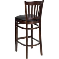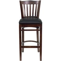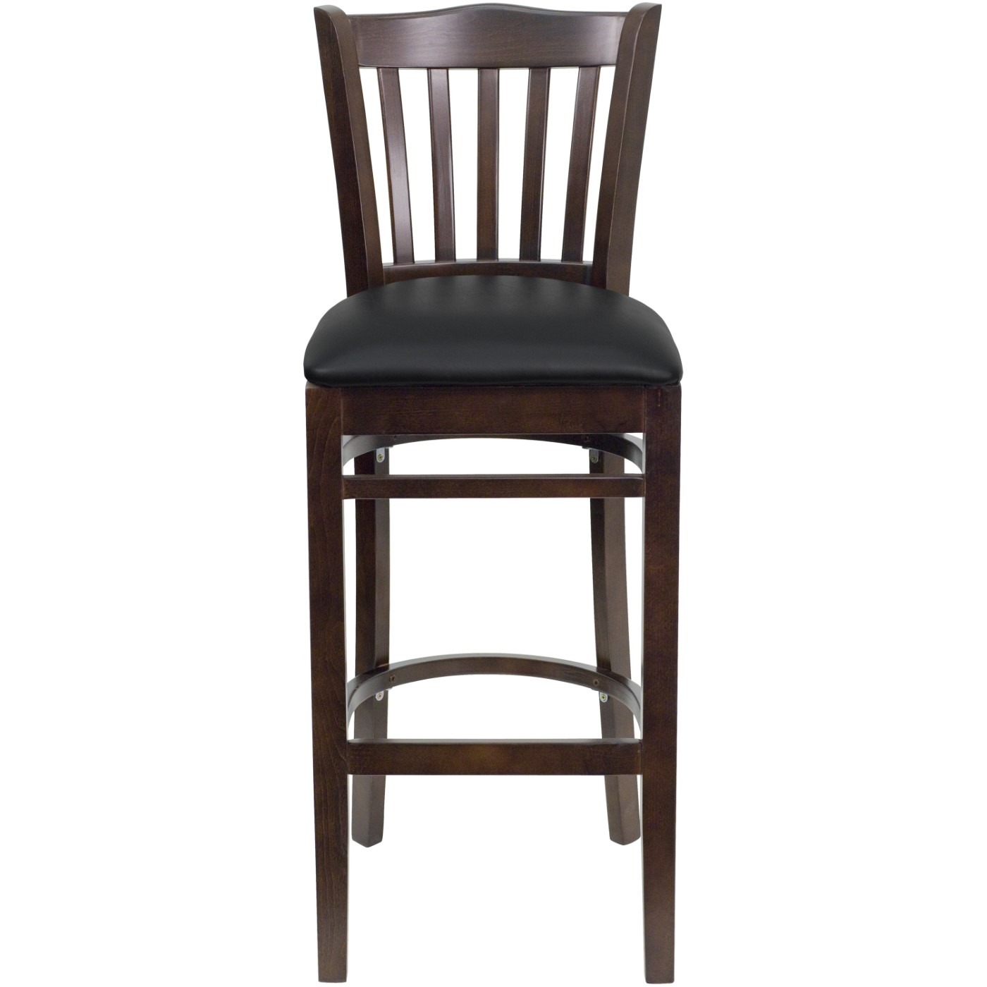 TOUGH ENOUGH SERIES VERTICAL SLAT BACK WALNUT WOOD RESTAURANT BARSTOOL - BLACK VINYL SEAT FREE SHIPPING!