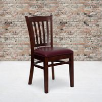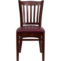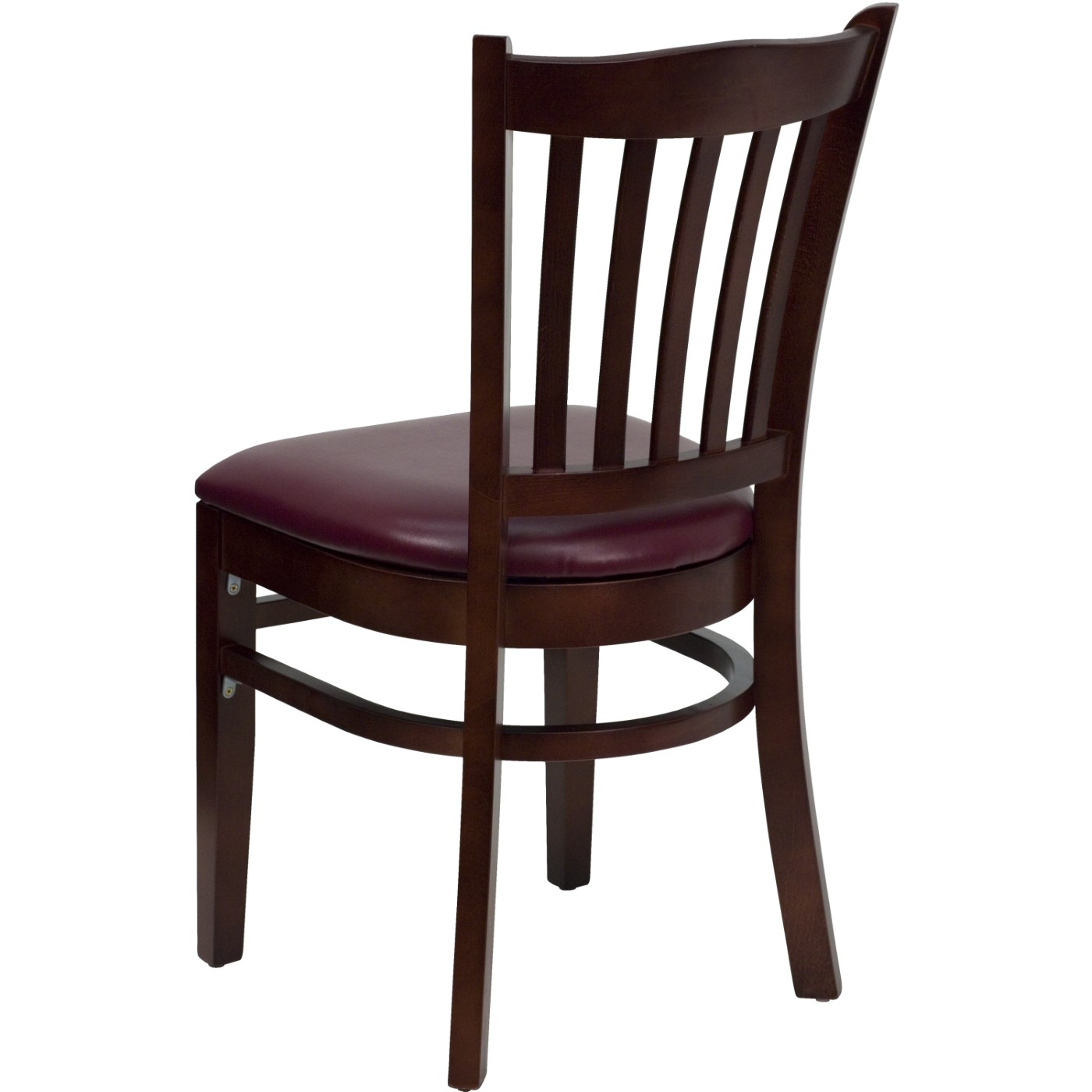 TOUGH ENOUGH SERIES VERTICAL SLAT BACK MAHOGANY WOOD RESTAURANT CHAIR - BURGUNDY VINYL SEAT: FREE SHIPPING!