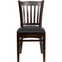 TOUGH ENOUGH SERIES VERTICAL SLAT BACK WALNUT WOOD RESTAURANT CHAIR - BLACK VINYL SEAT: FREE SHIPPING!