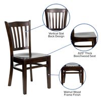 TOUGH ENOUGH SERIES VERTICAL SLAT BACK WALNUT WOOD RESTAURANT CHAIR