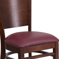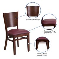 LACEY SERIES SOLID BACK WALNUT WOOD RESTAURANT CHAIR - BURGUNDY VINYL SEAT