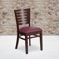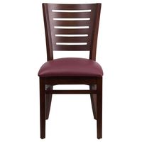 DARBY SERIES SLAT BACK WALNUT WOOD RESTAURANT CHAIR - BURGUNDY VINYL SEAT: FREE SHIPPING!