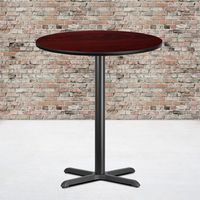 36'' ROUND MAHOGANY LAMINATE TABLE TOP WITH 30'' X 30'' BAR HEIGHT TABLE BASE: FREE SHIPPING!