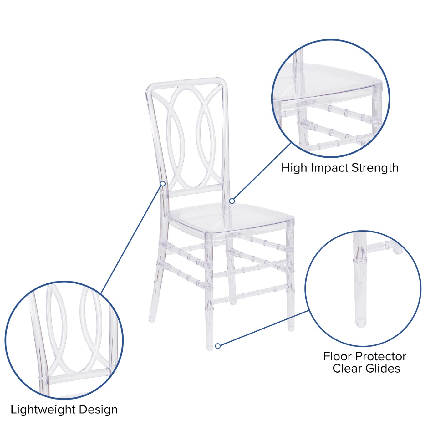 FLASH ELEGANCE CRYSTAL ICE STACKING CHAIR WITH DESIGNER BACK - EVENT CHAIR - UV RESISTANT FREE SHIPPING!