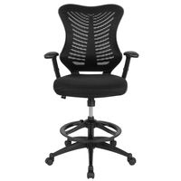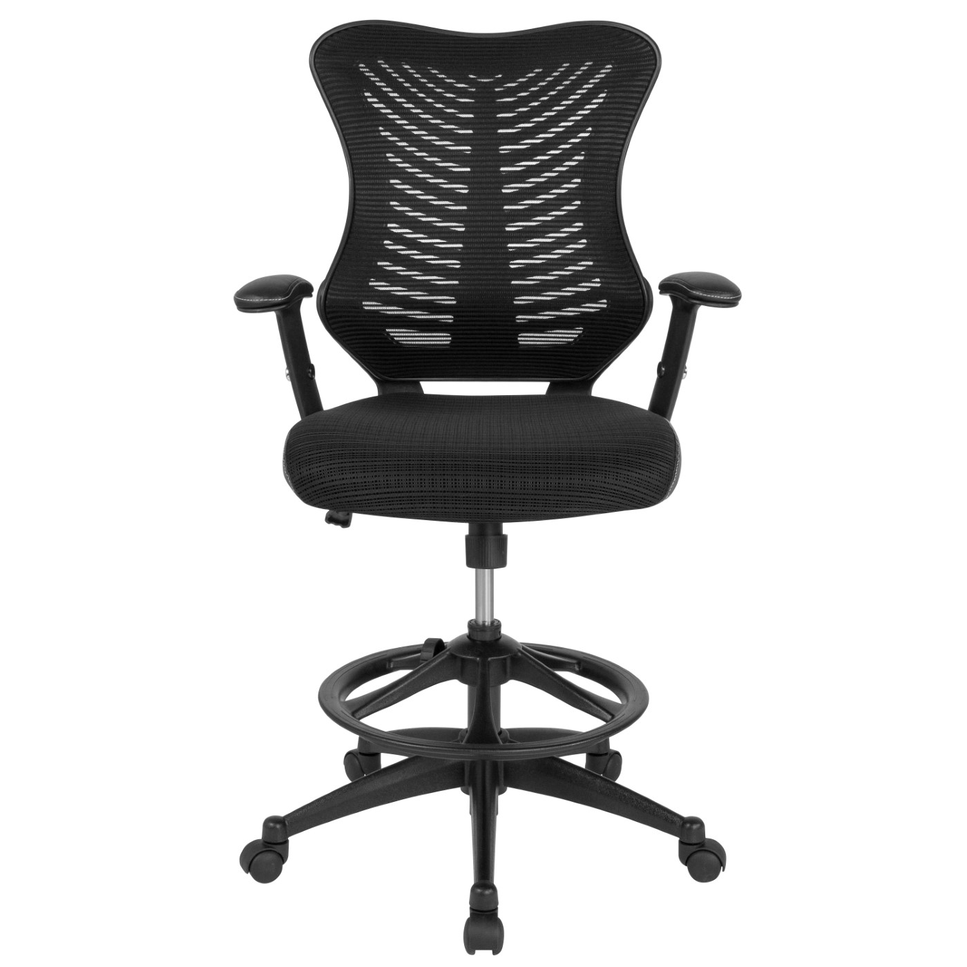 HIGH BACK DESIGNER BLACK MESH DRAFTING CHAIR WITH LEATHERSOFT SIDES AND ADJUSTABLE ARMS: FREE SHIPPING!