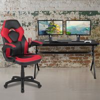 GAMING DESK AND RED/BLACK RACING CHAIR SET /CUP HOLDER/HEADPHONE HOOK/REMOVABLE MOUSE PAD TOP - 2 WIRE MANAGEMENT HOLES