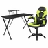BLACK GAMING DESK AND GREEN/BLACK RACING CHAIR SET WITH CUP HOLDER, HEADPHONE HOOK, AND MONITOR/SMARTPHONE STAND