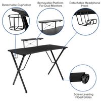 - Detachable Cup Holder (3.5"W x 2.75"H) and Headset Hook (3.5"W x 3.75"D)