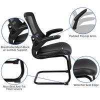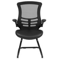 BLACK MESH SLED BASE SIDE RECEPTION CHAIR WITH WHITE STITCHED LEATHERSOFT SEAT AND FLIP-UP ARMS: FREE SHIPPING!