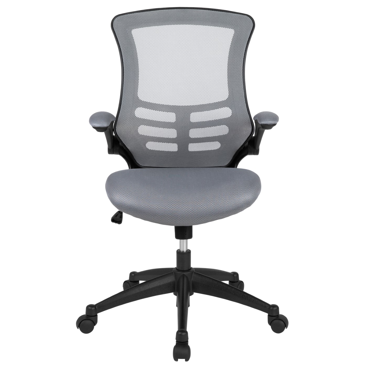 MID-BACK DARK GRAY MESH SWIVEL ERGONOMIC TASK OFFICE CHAIR WITH FLIP-UP ARMS